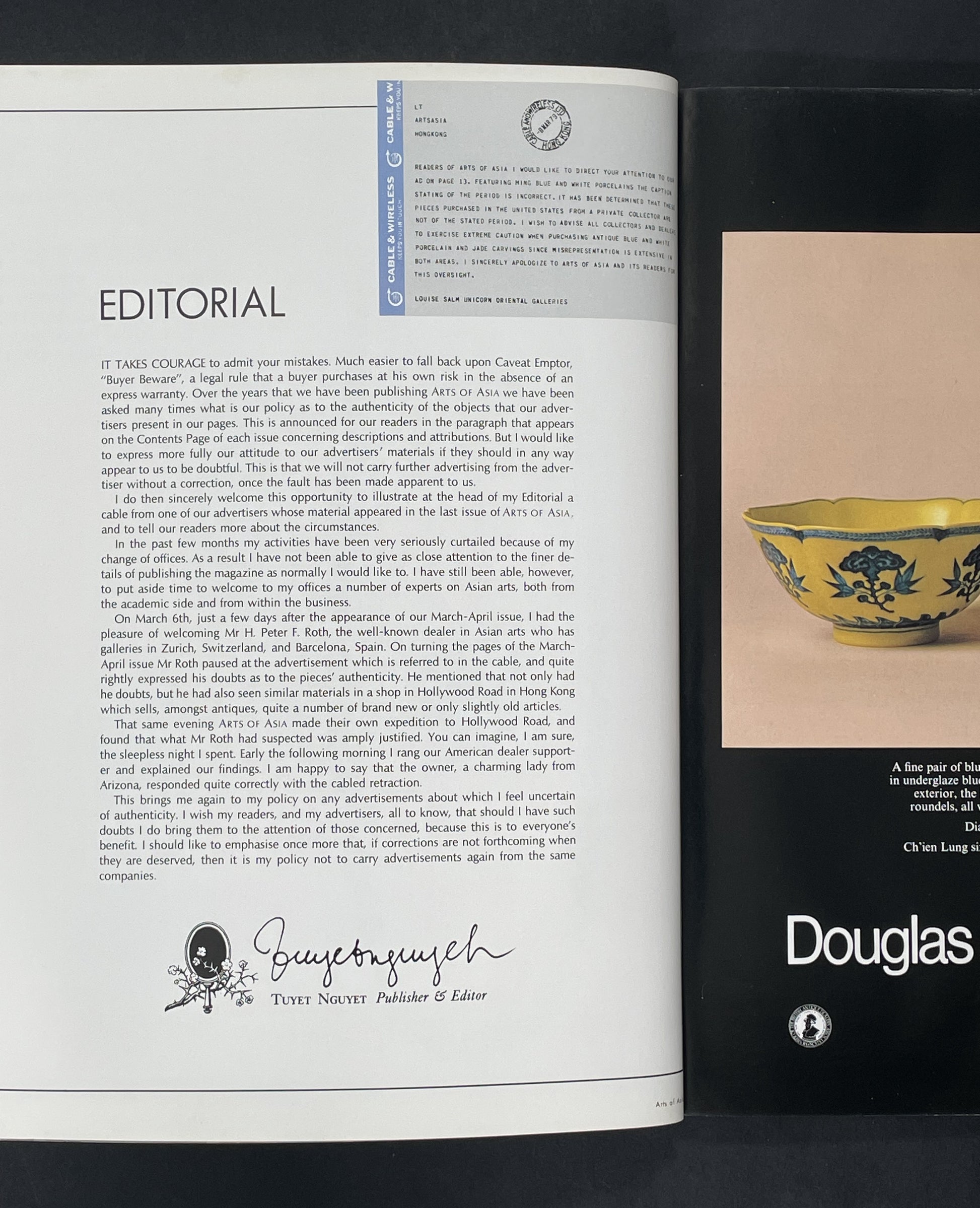 Features include articles on Hedda Morrison's photography in old Peking, Chinese scroll mounting techniques, and reviews of significant books within the art world. The editorial addresses authenticity in advertising, whilst the content spans an array of artistic expressions across the Asian continent. It provides an insight into collecting, appreciating, and understanding the historical and cultural significance of Asian artistry. A captivating read for enthusiasts.