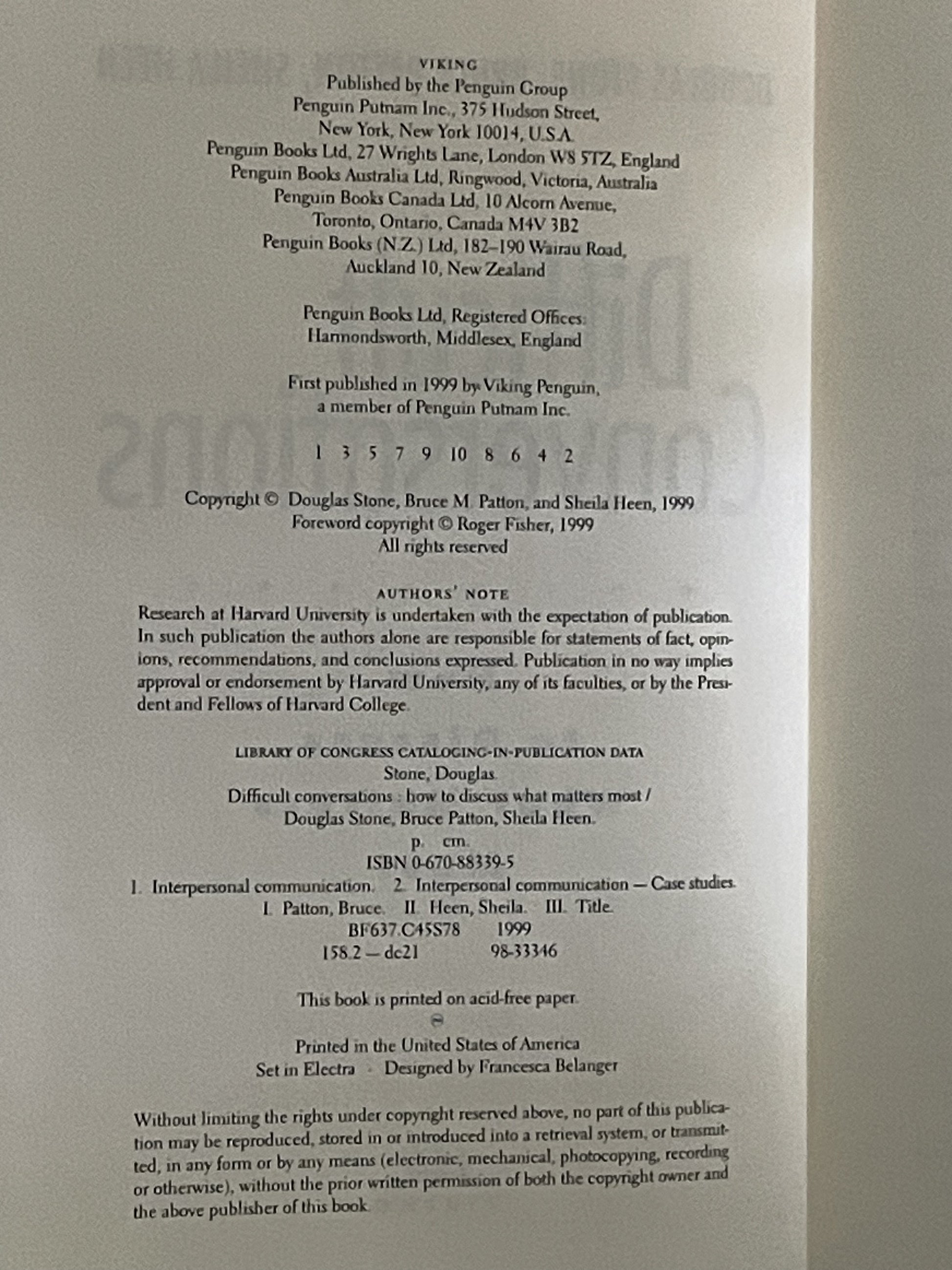 "Difficult Conversations" offers a practical guide to navigating challenging discussions in all aspects of life, from personal relationships to professional settings. Drawing on fifteen years of research from the Harvard Negotiation Project, the authors illuminate the underlying structure of difficult conversations and provide a step-by-step approach to understanding and managing them effectively.