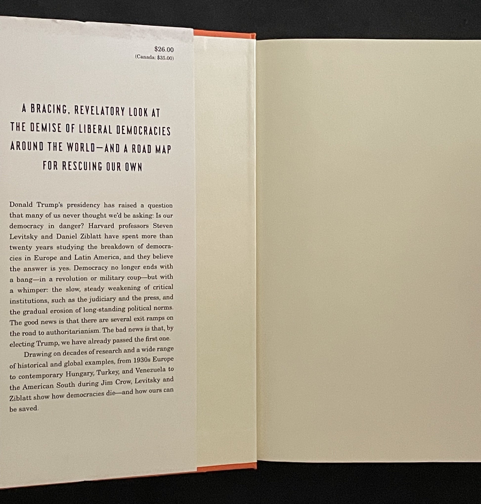 Steven Levitsky and Daniel Ziblatt, seasoned scholars of democratic failures, turn their attention to the fragility of democracy itself. Drawing upon decades of research across Europe and Latin America, they offer a bracing analysis of how democracies erode, not through dramatic coups, but through the gradual weakening of institutions and the erosion of political norms.