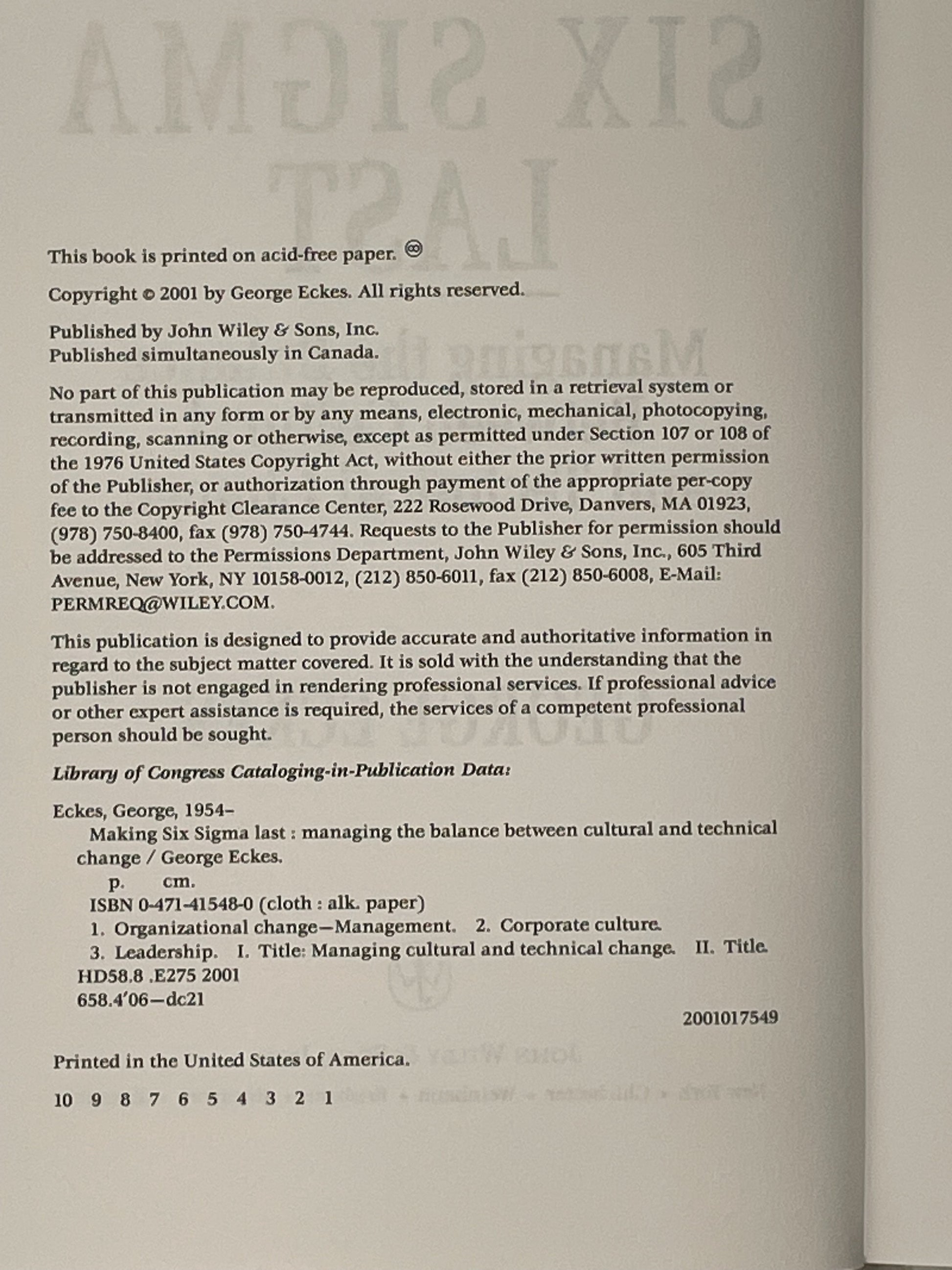 Making Six Sigma Last by George Eckes