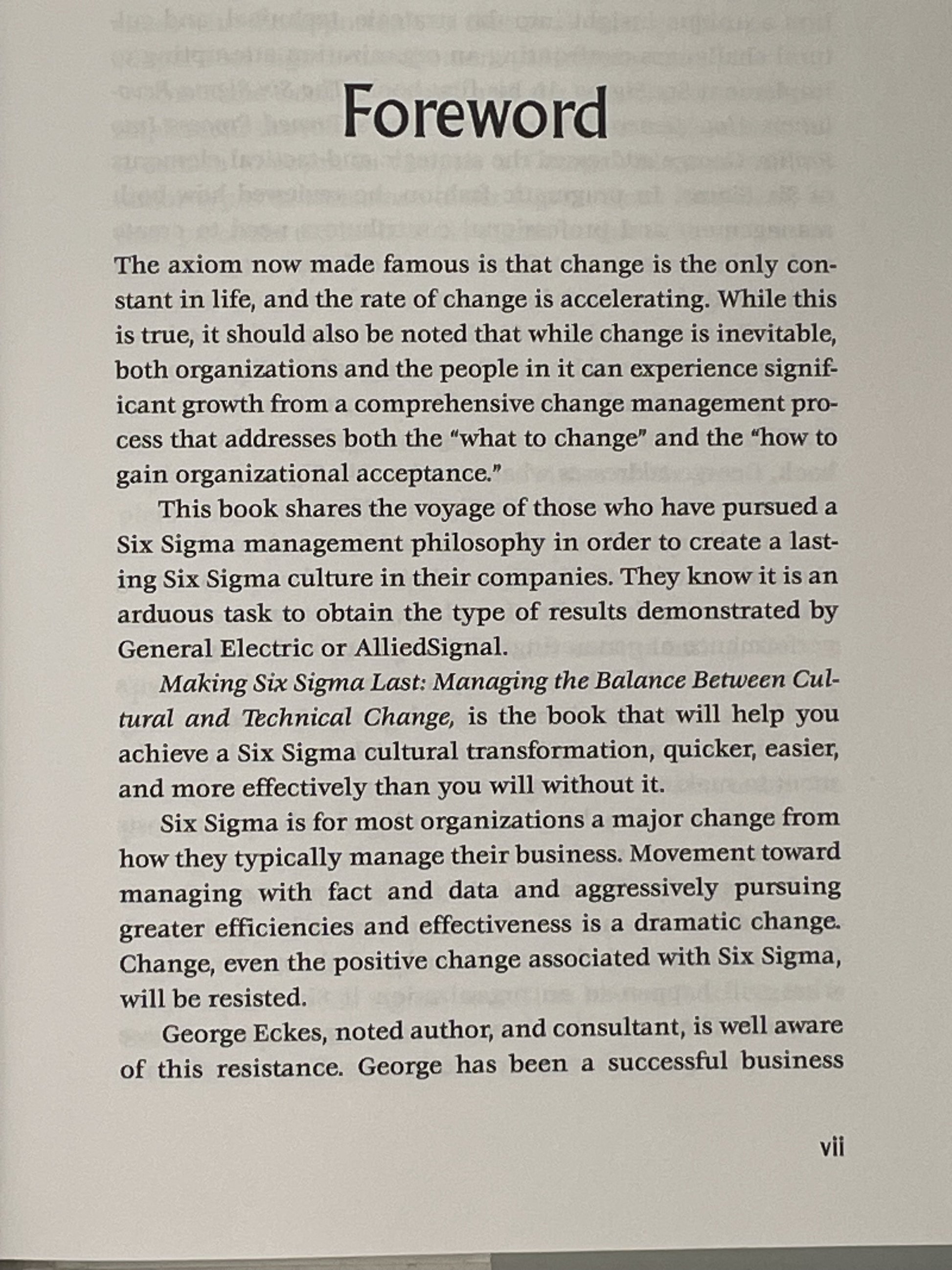 Eckes details methods for creating a need for Six Sigma and diagnosing and overcoming resistance. By balancing cultural and technical changes, this book equips organisations with the means to systematically improve their chances of a solid change initiative. It’s a practical resource for those seeking a successful and lasting Six Sigma transformation.