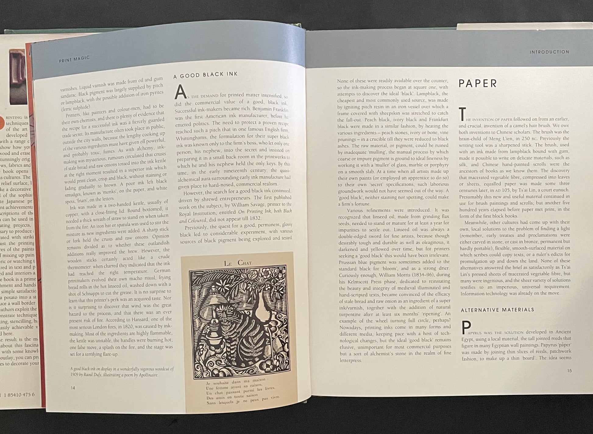 This book is a comprehensive guide to decorative printing techniques. It explores various methods, from simple potato cuts to more advanced techniques like linocutting, stencilling, batik, and tie-dye.