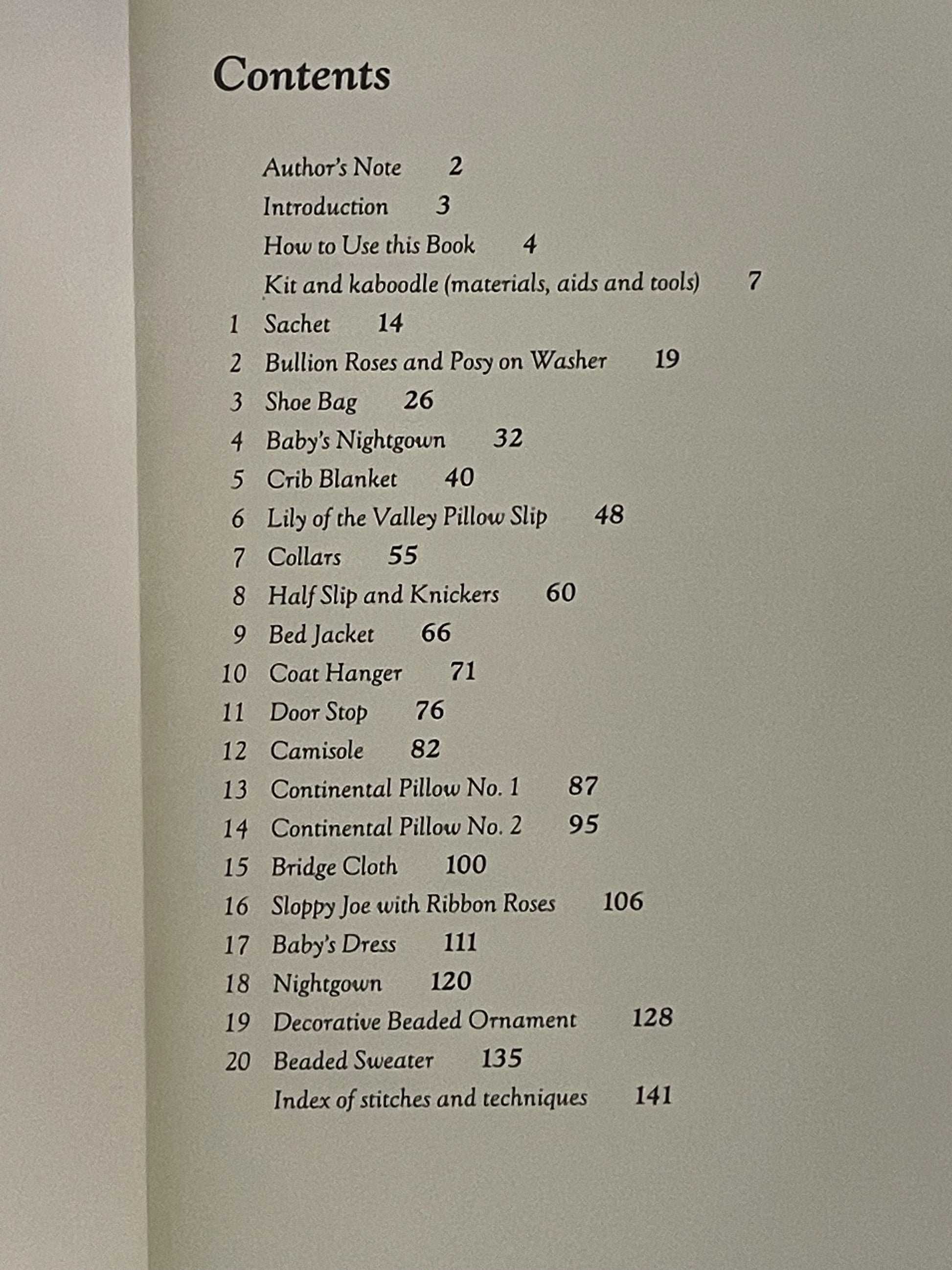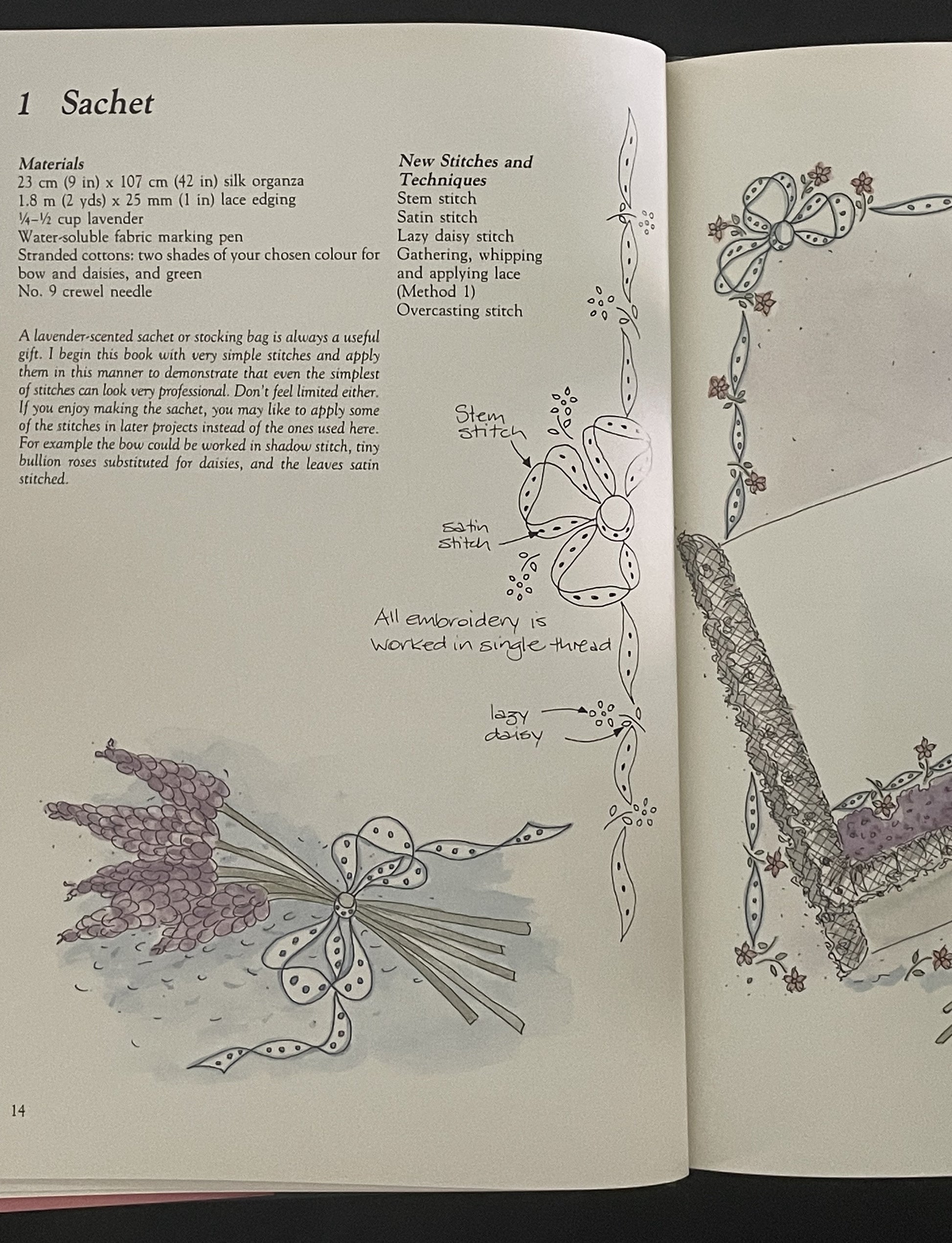 The book begins with simpler projects, like a lavender sachet, and progresses to more complex creations, including pillow covers and beaded sweaters. Each project is presented with illustrated, step-by-step instructions, lists of required materials, and clear guidance on making up the finished item.