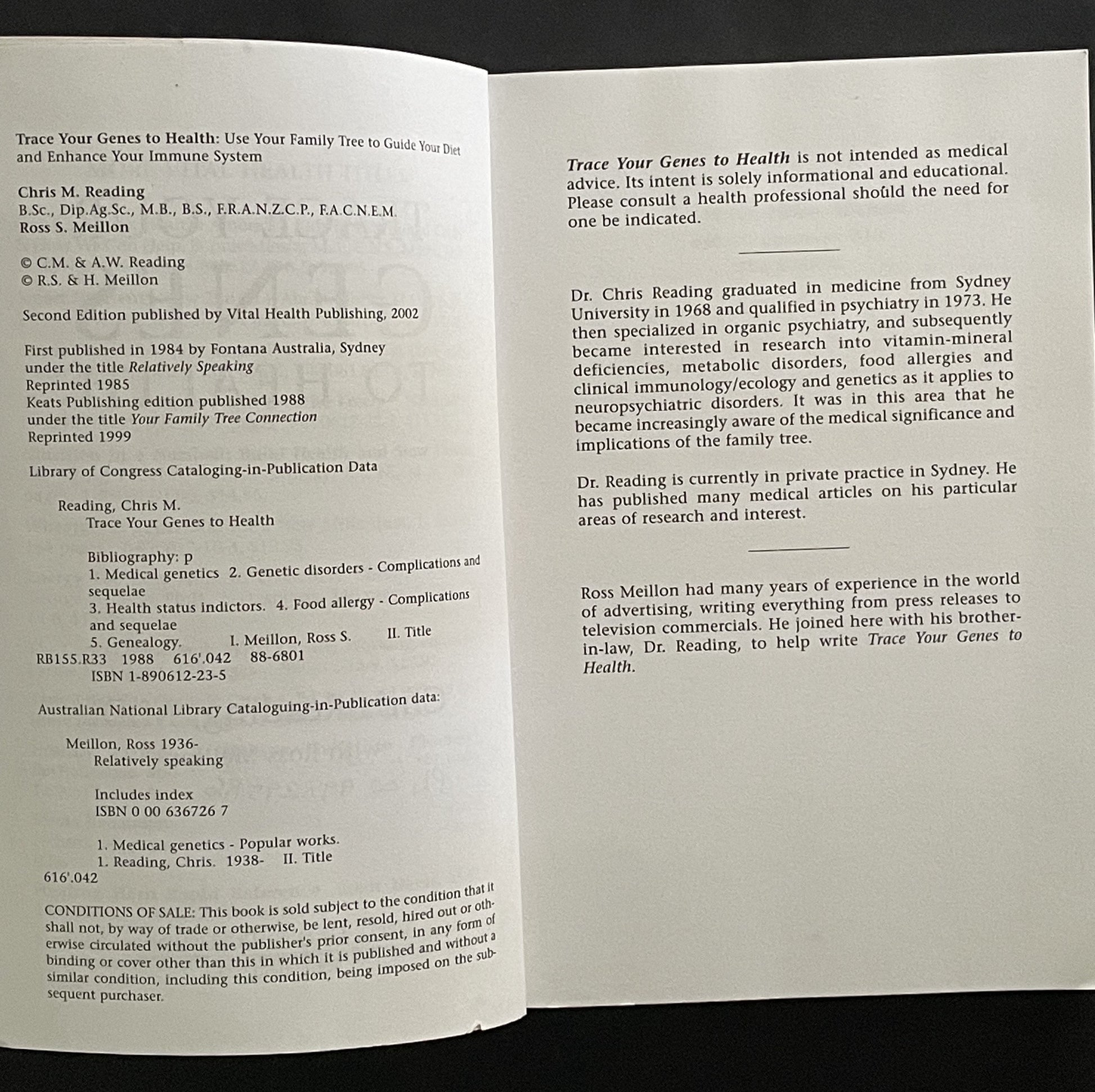 This book explores the profound connection between family history and personal health. Dr Chris Reading, alongside Ross Meillon, argues that a detailed family tree, rich with medical information, can be a powerful tool for understanding and overcoming a wide range of illnesses.